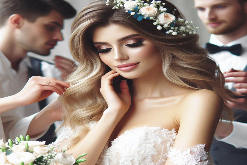 - Bridal Hair & Makeup: Our experienced stylists and makeup artists create a look that enhances your natural beauty and complements your wedding style.