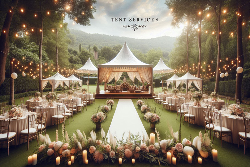 Create a stunning outdoor wedding experience with our professional tent services. Whether you’re planning an intimate garden ceremony or a grand outdoor reception, we provide elegant tents to match your style and event needs.